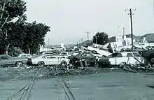 On June 9–10, 1972, extremely heavy rains over the eastern Black Hills of South Dakota produced record floods on Rapid Creek and other streams in the area. Nearly 15 inches (380 mm) of rain fell in about six hours near Nemo, and more than 10 inches (250 mm) of rain fell over an area of 60 square miles (160 km2). According to the Red Cross, the resulting peak floods (which occurred after dark) left 238 people dead and 3,057 people injured.[13] Total property destruction was estimated in excess of $160 million (about $964 million in 2018 dollars), which included 1,335 homes and 5,000 automobiles that were destroyed. The flood also nearly destroyed a popular children's park: Story Book Island.[14]