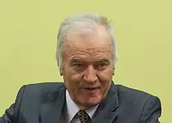 Ratko Mladić (Serbian Cyrillic: Ратко Младић, pronounced [râtko mlǎːdit͡ɕ]; born 12 March 1942) is a Bosnian Serb former military officer and convicted war criminal who led the Army of Republika Srpska (VRS) during the Yugoslav Wars.[1][2][3] In 2017, he was found guilty of committing war crimes, crimes against humanity, and genocide by the International Criminal Tribunal for the former Yugoslavia (ICTY).