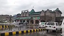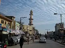 Rawalpindi flourished as a commercial centre, though the city remained largely devoid of an industrial base during the British era.[28] A large portion of Kashmir's external trade passing through the city; in 1885, 14% of Kashmir's exports, and 27% of its imports passed through the city.[28] A large market was opened in central Rawalpindi in 1883 by Sardar Sujan Singh, while the British further developed a shopping district for the city's elite known as Saddar with an archway built to commemorate Brigadier General Massey.[28]