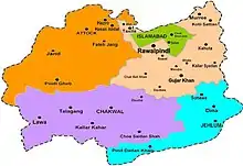 ![]() From top, left to right: Rawal Lake, Gulshan Dadan Khan Mosque, Bahria Town, Rawat Fort, Christ Church, Rawalpindi Railway Station | |