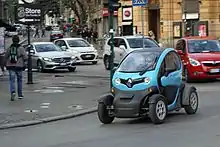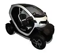 The Renault Twizy is a two-seat electric microcar designed and marketed by Renault. It is classified in Europe as either a light or heavy quadricycle depending on the output power, which is either 4 kW (5.4 hp) for the 45 model or 13 kW (17 hp) for the 80 model, both names reflecting its top speed in km/h. Originally manufactured in Valladolid, Spain,[4][5] production was moved to Busan in South Korea in March 2019 to meet increased demand in Asia.[6] In July 2023 it was announced that production of the Twizy was to end in September 2023; it is to be replace by the new Mobilize Duo.[7]