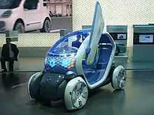 The Twizy debuted as a concept car at the 2009 Frankfurt Motor Show[8] and was designed by Françoise Leboinne and Luciano Bove. In November 2010, Nissan announced a rebadged variant to the Twizy, called the New Mobility Concept, or NMC. It was also displayed as a concept with Renault Samsung badging at the 2011 Seoul Motor Show,[9] although it was branded as a Renault in South Korea for production. In May 2011, Renault announced they would produce the Twizy and began taking reservations.