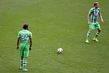 He scored his first ever goal in European football for Wolfsburg on 18 September 2014, netting directly from a free-kick after having previously scored an own-goal in a 4–1 defeat to English side Everton.[33] Three days later, Rodriguez scored twice more for Wolfsburg, once from the penalty spot and a volley from a Kevin De Bruyne corner, as Wolfsburg defeated Bayer Leverkusen 4–1.[34] He scored his third league goal of the season against Werder Bremen on 27 September, converting a De Bruyne cross to put Wolfsburg up 1–0 in an eventual 2–1 victory.[35]