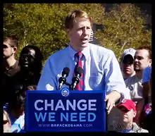 Cordray announced his 2008 candidacy for Ohio state attorney general on June 11, 2008. He was endorsed by Ohio Governor Ted Strickland.[70][71] The vacancy in the office of the attorney general was created by the May 14, 2008, resignation of Marc Dann, who was embroiled in a sex scandal.[71][72][73] Several leading Republican party contenders such as Montgomery, Jim Petro, DeWine, Maureen O'Connor, and Rob Portman declined to enter the race.[71][74] Cordray's opponents in the race were Michael Crites (Republican), and Robert M. Owens (Independent).[75] Cordray had a large financial advantage over his opponents, with approximately 30 times as much campaign financing as Crites.[76] Crites's campaign strategies included attempts to link Cordray with Dann—an association The Columbus Dispatch called into question[77]—and promoting himself as having more years of prosecutorial experience.[78] Cordray asserted that he managed the state's money safely despite the turbulence of the financial crisis of 2007–2008.[79][80]