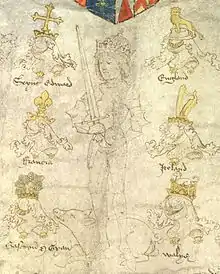 Richard's increasing role in the north from the mid-1470s to some extent explains his withdrawal from the royal court. He had been Warden of the West March on the Scottish border since 10 September 1470,[85] and again from May 1471; he used Penrith as a base while 'taking effectual measures' against the Scots, and 'enjoyed the revenues of the estates' of the Forest of Cumberland while doing so.[86] It was at the same time that the Duke of Gloucester was appointed sheriff of Cumberland five consecutive years, being described as 'of Penrith Castle' in 1478.[87]