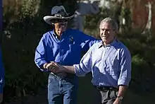 In 1978, Petty was elected to the Randolph County Commission as a Republican.[23] In 1980 he endorsed John Connally for the Republican nomination for president. According to Petty, it was a "tossup" between Connally and Ronald Reagan, but he chose Connally "basically on personality. And Connally's been there in Washington a lot of times doing a lot of things. He knows the system better."[24] He was reelected to the county commission in 1982, 1986, and 1990.[25][26] During his 1992 retirement tour, Petty took a parade lap before every race with the exception of the Southern 500, where Democratic presidential candidate Bill Clinton served as grand marshal.[27] In 1993, Petty formed a political action committee to support Republican candidates.[28] In 1996, he was the Republican nominee for North Carolina Secretary of State, but was defeated by State Senator Elaine Marshall in the general election. Petty was mistakenly seen as a shoo-in, and his campaigning was sporadic. Following his loss, Petty stated, "If I had known I wasn't going to win, I wouldn't have run."[29] In June 2016, he made an appearance on stage with Donald Trump.[30]