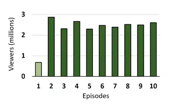 - This episode premiered unannounced and re-ran for four hours straight with improving ratings. This is the viewership of only the first broadcast of the episode.[12]