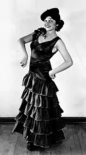 Margarita's father wanted her to become a professional dancer, while her mother hoped that she would become an actress.[9] Her paternal grandfather, Antonio Cansino, was renowned as a classical Spanish dancer. He popularized the bolero, and his dancing school in Madrid was world-famous.[10] Antonio Cansino instructed Rita Hayworth's first dance lesson.[11] Hayworth later recalled, "From the time I was three and a half ... as soon as I could stand on my own feet, I was given dance lessons."[12]: 67 She noted "I didn't like it very much ... but I didn't have the courage to tell my father, so I began taking the lessons. Rehearse, rehearse, rehearse, that was my girlhood."[13]: 16