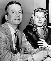 Hayworth married Orson Welles on September 7, 1943, during the run of The Mercury Wonder Show.[65] None of her colleagues knew about the planned wedding (before a judge) until she announced it the day before. For the civil ceremony, she wore a beige suit, a ruffled white blouse, and a veil. A few hours after they got married, they returned to work at the studio. They had a daughter, Rebecca, who was born on December 17, 1944, and died at the age of 59 on October 17, 2004. They struggled in their marriage, with Hayworth saying that Welles did not want to be tied down:
