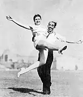 She returned in triumph to Columbia Pictures, and was cast in the musical You'll Never Get Rich (1941) opposite Fred Astaire in one of the highest-budgeted films Columbia had ever made.[6] The picture was so successful, the studio produced and released another Astaire-Hayworth picture the following year, You Were Never Lovelier.[6] Astaire's biographer Peter Levinson writes that the dancing combination of Astaire and Hayworth was "absolute magnetism on the screen".[21] Although Astaire made 10 films with Ginger Rogers, his other main dancing partner, Hayworth's sensuality surpassed Rogers' cool technical expertise. "Rita's youthful exuberance meshed perfectly with Fred's maturity and elegance", says Levinson.[21]