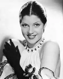 Hayworth had top billing in one of her best-known films, the Technicolor musical Cover Girl, released in 1944.[30] The film established her as Columbia's top star of the 1940s, and it gave her the distinction of being the first of only six women to dance on screen with both Gene Kelly and Fred Astaire.[31] "I guess the only jewels of my life", Hayworth said in 1970, "were the pictures I made with Fred Astaire ... And Cover Girl, too."[32]