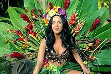 James Montgomery from MTV believed that the video drew inspiration from Sheena, Queen of the Jungle and stated the video did not take itself too seriously, describing it as "camp".[98] Slant Magazine writer Sal Cinquemani was neutral about the video, noting that although Prism was being billed as a departure for Perry, both "Roar" and its video were not.[99] Perry was criticized by PETA for using exotic animals in the video for "Roar". Merrilee Burke from PETA stated: "Animals used for entertainment endure horrific cruelty and suffer from extreme confinement and violent training methods." Burke also declared that the animals involved in the music video were allegedly provided by a company that was criticized by US officials.[100] Perry responded by obtaining a letter from the American Humane Association, which had representatives present at the three-day shoot. It stated that "After reviewing the reports, we believe that the Guidelines for the Safe Use of Animals in Filmed Media were followed and that no animal was harmed in the making of this music video".[101]