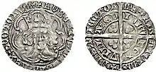 ![]() Groat of 1390 bearing a crowned facing effigy of Robert III on the obverse | |
