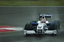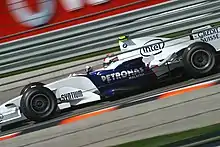 Kubica's retention as race driver for 2008 was confirmed on 21 August 2007.[31] Over the first half of the season, Kubica qualified and finished strongly, including his and BMW Sauber's first pole position at the Bahrain Grand Prix and second-place finishes at the Malaysian and Monaco Grands Prix.