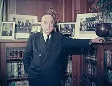 After graduating from the University of Melbourne in 1916 with first-class honours in Law, Menzies was admitted to the Victorian Bar and to the High Court of Australia in 1918. Establishing his own practice in Melbourne, Menzies specialised chiefly in constitutional law which he had read with the leading Victorian jurist and future High Court judge, Sir Owen Dixon.[8] In 1920, Menzies was an advocate for the Amalgamated Society of Engineers which eventually took its appeal to the High Court of Australia.[8] The case became a landmark authority for the positive reinterpretation of Commonwealth powers over those of the States. The High Court's verdict raised Menzies's profile as a skilled advocate, and eventually he was appointed a King's Counsel in 1929.[25]