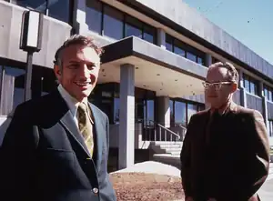 While Noyce was an undergraduate, he was fascinated by the field of physics and took a course in the subject that was taught by professor Grant Gale. Gale obtained two of the very first transistors ever produced by Bell Labs and showed them off to his class. Noyce was hooked.[10][18][19] Gale suggested that he apply to the doctoral program in physics at MIT, which he did.[20]