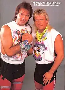 The Rock 'n' Roll Express is a professional wrestling tag team consisting of professional wrestlers Robert Gibson and Ricky Morton. The duo began teaming together in Memphis in the early 1980s, followed by Mid-South Wrestling (later to be known as the Universal Wrestling Federation), followed by Jim Crockett Promotions (JCP). They held the NWA World Tag Team Championship nine times, with the first four times in JCP. They also feuded with The Four Horsemen. In the late 1980s, they were contenders for the American Wrestling Association's AWA World Tag Team Championship. By 1991, the team was losing momentum, and Morton turned heel on his partner to join The York Foundation in World Championship Wrestling (WCW). In 1992, the team reformed in Smoky Mountain Wrestling, where they held the SMW Tag Team Championship ten times. The duo also worked in the World Wrestling Federation. On March 31, 2017, the Rock 'n' Roll Express was inducted into the WWE Hall of Fame by Jim Cornette. On April 15, 2023, the Rock n Roll Express was inducted into the ASW's Hall of Fame at the "Seventeenth Year Anniversary Rock N Roll Forever" show at the Madison Civic Center in Madison WV.