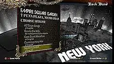 "Band World Tour" is the game's primary multiplayer mode. It allows any combination of 2-4 local players to create a virtual band, play gigs, and tour a virtual representation of the world. Although online play is not supported for Band World Tour, players can use the "Band Quickplay" mode to play together as a band online.[16] For the Xbox 360 and PlayStation 3 versions of the game, Band World Tour mode lets bands play in 41 different venues spanning 17 cities, including Los Angeles, Seattle, Boston, New York, London, Sydney, Stockholm, and Rome.[17] After creating their band, characters, and logo, the players can begin playing concerts in small venues in their hometown until they unlock vans, tour buses and private jets, which unlock other cities and continents. Successful performances also earn the band fans, stars, and in-game cash.[18] Most cities and larger venues require the band to achieve a certain number of fans and stars before they are unlocked. In-game venues are inspired by real-life venues and often display local art styles from each of the represented cities.[17]