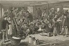 The riot was the result of a combination of racial prejudice and general resentment against Union Pacific.[2] In 1882, the Chinese Exclusion Act required that "... from and after the expiration of ninety days next after the passage of this act, and until the expiration of ten years next after the passage of this act, the coming of Chinese laborers to the United States be, and the same is hereby, suspended; and during such suspension it shall not be lawful for any Chinese laborer to come."[11] In the years preceding the Rock Springs massacre, the importation of Chinese labor was seen as a "system worse than slavery".[12] The white miners at Rock Springs, being mostly Cornish, Irish, Swedish, and Welsh immigrants, believed lower-paid Chinese laborers drove down their wages.[13][14][15][16][17][18]