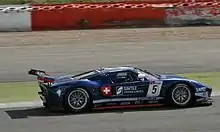 After leaving Formula One, Grosjean became involved in sportscar racing. In March 2010, Grosjean secured a drive in the inaugural FIA GT1 World Championship, driving a Ford GT1 for the Matech Competition team alongside German driver Thomas Mutsch.[23] The pairing won the opening Championship Race of the season in Abu Dhabi and added a second victory at Brno in May to lead the standings after the first three rounds of the season.[24]