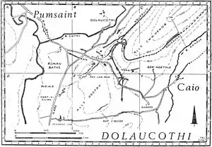 After ager publicus, minor, local roads and boundaries between adjacent private properties offered the least costly routes, though not always the most straightforward. Sometimes the State would purchase the whole of a property, mark out the intended course of the aqueduct, and resell the unused land to help mitigate the cost.[19] Graves and cemeteries, temples, shrines and other sacred places had to be respected; they were protected by law, and villa and farm cemeteries were often deliberately sited very close to public roadways and boundaries. Despite careful enquiries by planners, problems regarding shared ownership or uncertain legal status might emerge only during the physical construction. While surveyors could claim ancient right to use land once public, now private, for the good of the State, the land's current possessors could take out a legal counterclaim for compensation based on their long usage, productivity and improvements. They could also join forces with their neighbours to present a united legal front in seeking higher rates of compensation. Aqueduct planning "traversed a legal landscape at least as daunting as the physical one".[20]