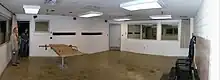 Gardner's incarceration as Utah's then-youngest inmate on death row was not uneventful.[33] A hearing was held on February 19, 1987, in which Gardner and other inmates claimed "unconstitutional confinement" in unsanitary conditions with poor food.[34] On October 28, 1987, Gardner broke a glass partition in a prison visiting area and had sex with a woman who was meeting him, while other inmates cheered and barricaded the doors.[1] According to state prison spokesperson Juan Benavidez, though Gardner had "knocked out the lights", an officer who was in the control room "could still see what was going on."[35] Gardner claimed breaking the glass was an accident.[36][37] In 1993, Utah state representative Dan Tuttle introduced what he called "the Ronnie Lee Gardner bill" in which he proposed that law enforcement officers be permitted to shoot inmates attempting to escape, whether they are "armed or not."[38]