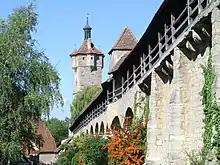 - Spital bastion (Spitalbastei), a barbican with an abwurfdach built by Rothenburg architect and stonemason, Leonhard Weidmann