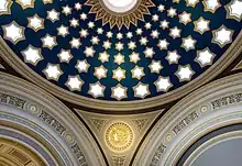 In 1821, the bank moved from its original head office in Edinburgh's Old Town to Dundas House, on St. Andrew Square in the New Town. The building as seen along George Street forms the eastern end of the central vista in New Town. It was designed for Sir Lawrence Dundas by Sir William Chambers as a Palladian mansion, completed in 1774. An axial banking hall (Telling Room) behind the building, designed by John Dick Peddie, was added in 1857; it features a domed roof, painted blue internally, with gold star-shaped coffers.[1] The banking hall continues in use as a branch of the bank, and Dundas House remains the registered head office of the bank to this day.