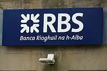 The Royal Bank of Scotland plc (Scottish Gaelic: Banca Rìoghail na h-Alba)[2] is a major retail and commercial bank in Scotland. It is one of the retail banking subsidiaries of NatWest Group, together with NatWest (in England and Wales) and Ulster Bank. The Royal Bank of Scotland has around 700 branches, mainly in Scotland, though there are branches in many larger towns and cities throughout England and Wales. The bank is completely separate from the fellow Edinburgh-based bank, the Bank of Scotland, which pre-dates the Royal Bank by 32 years. The Royal Bank of Scotland was established to provide a bank with strong Hanoverian and Whig ties.[3]