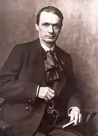Rudolf Joseph Lorenz Steiner (27 or 25 February 1861[1] – 30 March 1925) was an Austrian occultist,[8] social reformer, architect, esotericist,[9][10] and claimed clairvoyant.[11][12] Steiner gained initial recognition at the end of the nineteenth century as a literary critic and published works including The Philosophy of Freedom.[13] At the beginning of the twentieth century he founded an esoteric spiritual movement, anthroposophy, with roots in German idealist philosophy and theosophy. His teachings have been described as similar to Christian Gnosticism[14] (for heresiologists it is little doubt that these are neognosticism[15][16]). Many of his ideas are pseudoscientific.[17] He was also prone to pseudohistory.[18]
