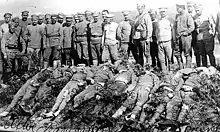 In June 1918, when it had become apparent that a revolutionary army composed solely of workers would not suffice, Trotsky instituted mandatory conscription of the rural peasantry into the Red Army.[21] The Bolsheviks overcame opposition of rural Russians to Red Army conscription units by taking hostages and shooting them when necessary in order to force compliance.[22] The forced conscription drive had mixed results, successfully creating a larger army than the Whites, but with members indifferent towards communist ideology.[19]