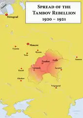 Protests against grain requisitioning of the peasantry were a major component of the Tambov rebellion and similar uprisings; Lenin's New Economic Policy was introduced as a concession.