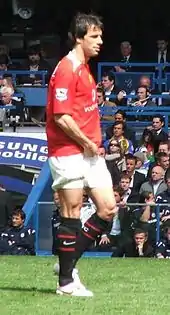 At the start of the 2005–06 season, Van Nistelrooy scored in United's first four Premier League games. He finished as the second-highest league scorer with 21 goals, behind Arsenal's Thierry Henry. However, he was benched for the League Cup Final against Wigan Athletic, fuelling speculation of a rift between him and Alex Ferguson, which Van Nistelrooy denied. He was nonetheless left on the bench for six consecutive league matches, and though he then returned to the starting line-up and scored match-winners against West Ham United and Bolton Wanderers, fresh doubt spread over Van Nistelrooy's future when he was benched for United's season finale win over Charlton Athletic. Ferguson claimed that Van Nistelrooy was angry at the decision and left the stadium three hours before kick-off.[58][59] On 9 May 2006, it was reported that Van Nistelrooy's exclusion from the squad was due to a training session fight between him and teammate Cristiano Ronaldo. Van Nistelrooy allegedly criticised Ronaldo's tendency to hold onto the ball instead of passing to his teammates, which sparked the fight, after which Van Nistelrooy remarked, "What are you going to do? Complain to your daddy?" This was in reference to United's Portuguese assistant manager, Carlos Queiroz,[60] but Ronaldo took the statement literally and allegedly broke into tears since his father, José had died eight months previously.[61] Van Nistelrooy later apologised to Ferguson for his behaviour in the previous few months.[62]