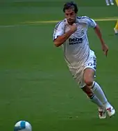 Van Nistelrooy made his debut for the Spanish club in a 1–0 friendly win over Reggina on 4 August 2006.[65] Van Nistelrooy scored a hat-trick in his second league match against Levante and, on 12 November 2006, he scored all four of Real Madrid's goals in a 4–1 victory over Osasuna. For the first six months he was a teammate of Ronaldo, a player whom Van Nistelrooy regards as the best he ever played with.[66][67] Van Nistelrooy won the league's Pichichi award with 25 goals as Real Madrid took home the 2006–07 title, and he also equalled the longest consecutive scoring streak in La Liga history with seven straight matches, tying a league record shared by Hugo Sánchez.[68]