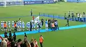 Van Nistelrooy scored his only competitive hat-trick with Hamburg on 15 August 2010, in a 5–1 win over Torgelower SV Greif in the first round of the 2010–11 DFB-Pokal.[81] On 21 August 2010, he scored a brace in Hamburg's season opener against Schalke 04, which HSV won 2–1. During that match, he played against his friend and former Real Madrid teammate Raúl, who was making his Bundesliga debut. In the January transfer window, Van Nistelrooy was linked a return move back to Real Madrid and could be used for a short-term basis to cover, following injuries of Gonzalo Higuaín and Karim Benzema as manager José Mourinho would be happy for Van Nistelrooy to join the club as Mourinho left the door for him.[82] Van Nistelrooy admitted he seriously considered moving back to the club if the bid happened.[83] The club, however, rejected Madrid's bid for Van Nistelrooy, giving the club a warning as Hamburg wants to keep hold of him until the transfer window ended.[84] Despite being angered over his move to Real Madrid rejected, Van Nistelrooy said he would remain committed at Hamburg.[85] During a match between Hamburg and Hannover 96 on 16 April 2011, Van Nistelrooy suffered a calf injury that kept him out until the last matchday.[86][87]