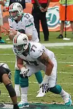 In the 2012 NFL Draft, the Miami Dolphins selected Tannehill in the first round with the eighth overall pick.[29] He was the first quarterback selected by the Dolphins in the first round since Dan Marino went 27th overall in 1983. He became the 17th starting quarterback by the Dolphins since Marino and only the third quarterback taken in the first round in franchise history after Hall of Famers Bob Griese and Marino.[30]