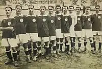 After some initial difficulties, Palestra Italia played its first game in the town of Votorantim (São Paulo State) – beating Savoia 2–0 with goals from Bianco and Alegretti to win the Taça Savoia, the club's first title.[7]