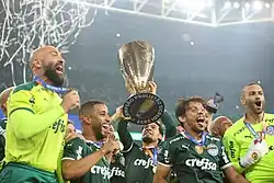 Palmeiras was founded by Italian immigrants in 1914, as "Palestra Itália" (pronounced [paˌlɛstɾiˈtaliɐ]). However, the club changed its name on 14 September 1942, as a result of Brazil joining the Allies in the Second World War against Italy ("Itália" in Portuguese) and the Axis powers. Since then, Palmeiras has won 17 top-tier national competitions, including a record 11 Campeonato Brasileiro Série A, 4 Copas do Brasil, 1 Copa dos Campeões, and 1 Supercopa do Brasil making it the most successful club in top-tier domestic competitions in Brazil.[3] In international club football, the Big Green has won the first ever international tournament known as International Champions Cup (or 'Copa Rio') in 1951,[4] the 1999, 2020 and 2021 Copa Libertadores, the 2022 Recopa Sudamericana, and the 1998 Copa Mercosul. The club has also been successful at a regional level as they have won 5 Interstate titles (Torneio Rio – São Paulo), and 25 State Championship titles (Campeonato Paulista).[5]