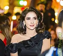 Qamar was offered an Indian film opposite Randeep Hooda, and supporting roles in Once Upon a Time in Mumbaai (2012) and Heroine (2012), which she declined.[54] After the 2016 Uri attack, relations between India and Pakistan deteriorated; the Indian Motion Picture Producers Association (IMPPA) and the Film Producers Guild of India banned Pakistani artists from working in India until the situation normalised.[55] The comedy-drama Hindi Medium (2017), in which Qamar played the lead female role of Mita Batra, a nouveau riche opposite Irrfan Khan, marked her first project in the Hindi cinema.[56][57] Critical reception of the film was positive. A reviewer for The Times of India wrote, "Saba, as the dominating wife is sheer delight onscreen".[58] In a scathing review, Sreehari Nair of Rediff.com labelled the film "fascinatingly frustrating" and called Qamar "natural actress, sexual daring".[59] The film earned over ₹334.36 million worldwide, a majority of which came from the Chinese box office.[60] and China with a collection of ₹334.36 million.[61] Qamar received several Best Female Debut and Best Actress awards and nominations at various award ceremonies, including a Best Actress nomination at Filmfare. Later that year, Qamar was declared as the top Bollywood debutante of 2017 by Eastern Eye.[62][63][64]