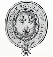 Colbert established, by letters patent, the public enterprise Manufacture royale de glaces de miroirs (French pronunciation: [manyfaktyʁ ʁwajal də ɡlas də miʁwaʁ], Royal Mirror-Glass Factory) in October 1665.[4] The company was created for a period of twenty years and would be financed in part by the State. The beneficiary and first director was the French financier Nicolas du Noyer, receiver of taxes of Orléans,[5] who was granted a monopoly of making glass and mirror-glass for a period of twenty years. The company had the informal name Compagnie du Noyer.