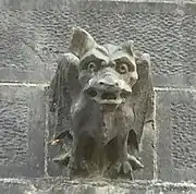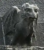 An 1881 estimate by the local stonemason McLeod suggests that Burges provided around 844 sculptures, of which around 412 were for the interior.[28] The total of some 1,260 sculptures include 32 gargoyles, each with different animal heads.[45] Burges oversaw nearly all aspects of the design, headquartered in his office in Buckingham Street and on numerous site visits. Most modern scholars agree that his overarching control over the design of the architecture, statuary, stained glass and internal decorations led to the cathedral's unity of style.[8] He considered sculpture an "indispensable attribute of architectural effect"[46] and, at Saint Fin Barre's, believed he was engaged upon "a work which has not been attempted since the West front of Wells Cathedral".[46] In the designs for the pieces decorating the cathedral, Burges worked closely with Thomas Nicholls, who constructed each figure in plaster,[46] and with McLeod and local stonemasons, who carved almost all of the sculptures in situ.[46]