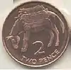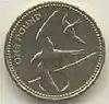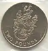Queen Elizabeth's effigy was redesigned on most of the denominations in 1991, followed by the rest in 1998. Seven-sided 20-pence coins were also first introduced in 1998 and, in that same year, older 5- and 10-pence coins were replaced by downsized issues featuring new animal designs. However, the 50-pence coin was not downsized until 2003. Until that time, the original, larger-sized 50-pence coin continued to circulate. In 2002, nickel-brass £1 coins were introduced to replace the note, and bimetallic £2 coins were introduced to the islands the following year. The edge inscriptions of the £2 coins are (in capitals) "500th Anniversary" for the 2002 coin, and "Loyal and Faithful" for the 2003 coin.