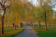 Salem is widely noted for the infamous Salem witch trials of 1692. Some of Salem's police cars are adorned with witch logos, a public elementary school is known as Witchcraft Heights, and the Salem High School athletic teams are named the Witches. Gallows Hill Park was originally believed to be the site of the executions during the Witch Trials, but in 2016 a site nearby called Proctor's Ledge was identified as the true site of the executions.[7] Gallows Hill Park now serves as a town park, with baseball fields, tennis courts, and other amenities.