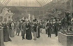 The Salon (French: Salon), or rarely Paris Salon (French: Salon de Paris [salɔ̃ də paʁi]), beginning in 1667[1] was the official art exhibition of the Académie des Beaux-Arts in Paris. Between 1748 and 1890 it was arguably the greatest annual or biennial art event in the Western world. At the 1761 Salon, thirty-three painters, nine sculptors, and eleven engravers contributed.[2] From 1881 onward, it was managed by the Société des Artistes Français.