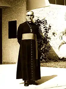 In February 1980, Archbishop Óscar Romero published an open letter to US President Jimmy Carter in which he pleaded with him to suspend the United States' ongoing program of military aid to the Salvadoran regime. He advised Carter that "Political power is in the hands of the armed forces. They know only how to repress the people and defend the interests of the Salvadoran oligarchy." Romero warned that US support would only "sharpen the injustice and repression against the organizations of the people which repeatedly have been struggling to gain respect for their fundamental human rights".[80] On 24 March 1980, the Archbishop was assassinated while celebrating Mass, the day after he called upon Salvadoran soldiers and security force members to not follow their orders to kill Salvadoran civilians. President Carter stated this was a "shocking and unconscionable act".[81] At his funeral a week later, government-sponsored snipers in the National Palace and on the periphery of the Gerardo Barrios Plaza were responsible for the shooting of 42 mourners.[82]