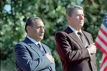 The Salvadoran government was considered an ally of the U.S. in the context of the Cold War.[39] During the Carter and Reagan administrations, the US provided 1 to 2 million dollars per day in economic aid to the Salvadoran government.[40] The US also provided significant training and equipment to the military. By May 1983, it was reported that US military officers were working within the Salvadoran High Command and making important strategic and tactical decisions.[41] The United States government believed its extensive assistance to El Salvador's government was justified on the grounds that the insurgents were backed by the Soviet Union.[42]