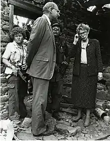 The US steadfastly denied the existence of the El Mozote massacre, dismissing reports of it as leftist "propaganda", until secret US cables were declassified in the 1990s.[105] The US government and its allies in US media smeared reporters of American newspapers who reported on the atrocity and, more generally, undertook a campaign of whitewashing the human rights record of the Salvadoran military and the US role in arming, training and guiding it. The smears, according to journalists like Michael Massing writing in the Columbia Journalism Review and Anthony Lewis, made other American journalists tone down their reporting on the crimes of the Salvadoran regime and the US role in supporting the regime.[98][106][107][96][97][108] As details became more widely known, the event became recognized as one of the worst atrocities of the conflict.