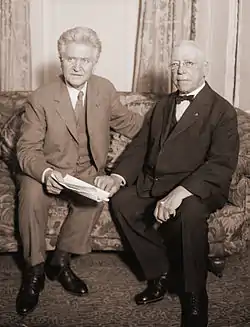In 1873, Gompers moved to the cigar maker David Hirsch & Company, a "high-class shop where only the most skilled workmen were employed".[14] Gompers later called this change of employers "one of the most important changes in my life", for at Hirsch's—a union shop operated by an émigré German socialist—Gompers came into contact with an array of German-speaking cigar makers—"men of keener mentality and wider thought than any I had met before", he recalled.[15] Gompers learned German and absorbed many of the ideas of his shop mates, developing a particular admiration for the ideas of the former secretary of the International Workingmen's Association, Karl Laurrell.[16] Laurrell took Gompers under his wing, challenging his more simplistic ideas and urging Gompers to put his faith in the organized economic movement of trade unionism rather than the socialist political movement.