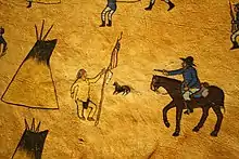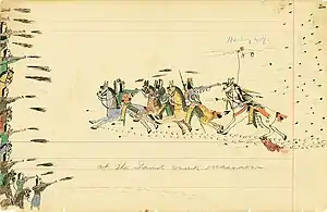 ![]() A depiction of one scene at Sand Creek by witness Howling Wolf | |||||||