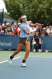 In singles, Mirza had wins over Svetlana Kuznetsova, Vera Zvonareva, and Marion Bartoli, as well as former world-number-ones Martina Hingis, Dinara Safina, and Victoria Azarenka. She is the highest-ranked Indian female player ever, peaking at world No. 27 in mid-2007. However, a major wrist injury caused her to shift to doubles. Mirza has achieved a number of firsts for women's tennis in India, including reaching the one million-US$ mark in career earnings (currently over US$7.2 million), winning a singles WTA Tour title, and winning a major title, as well as qualifying for (and eventually winning) the WTA Finals in 2014 in doubles partnering Cara Black, and defending her title the following year partnering Martina Hingis.[11] Mirza retired from professional tennis in February 2023.[12]